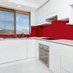 + Stylish Kitchen with sleek white bench top and glass splashback