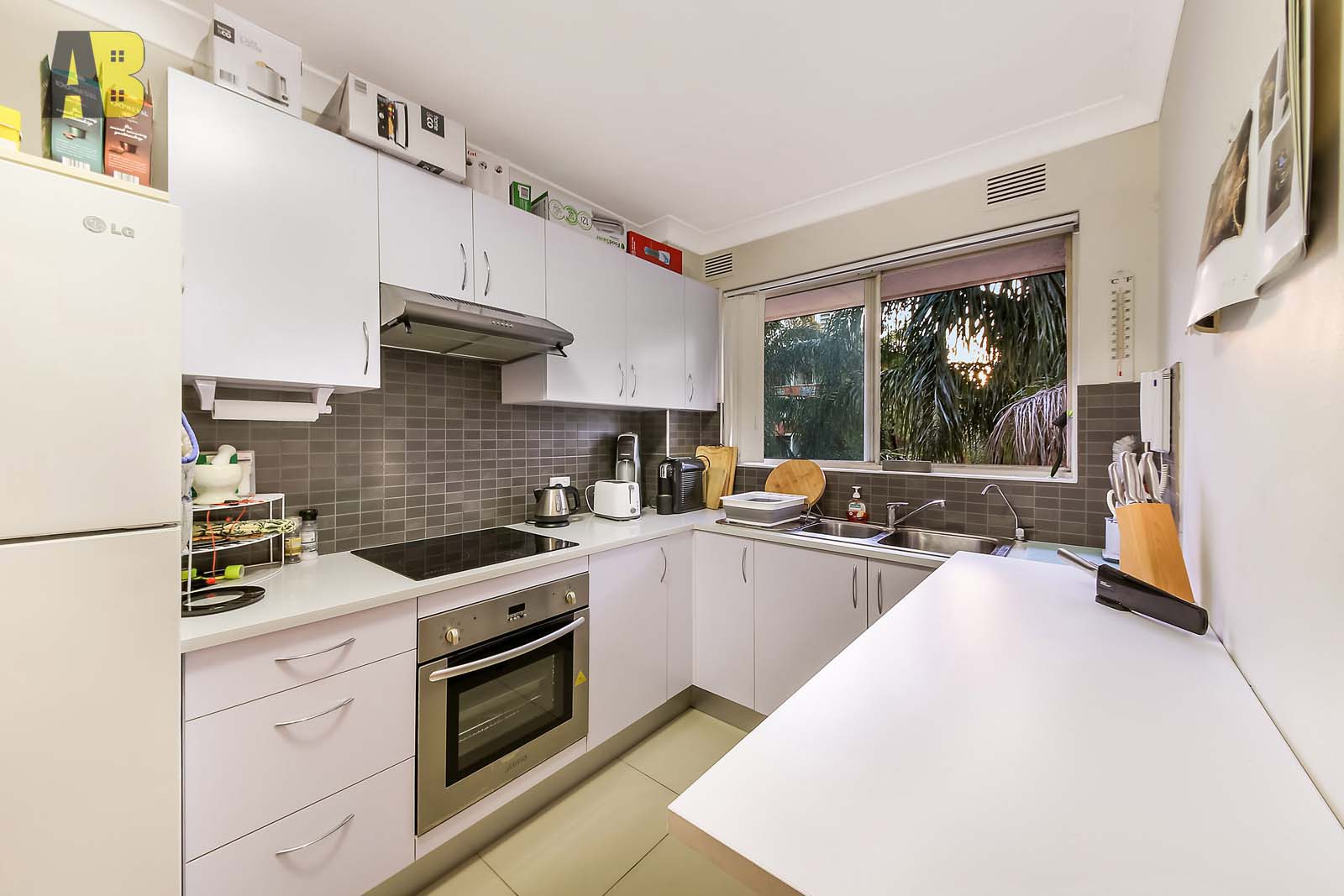 • The kitchen has a modern bright look with plenty of storage
