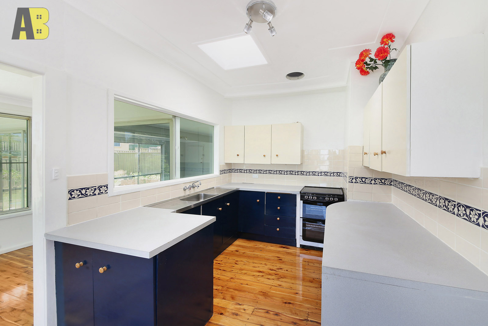 • Open plan kitchen with plenty of storage and ceiling skylight