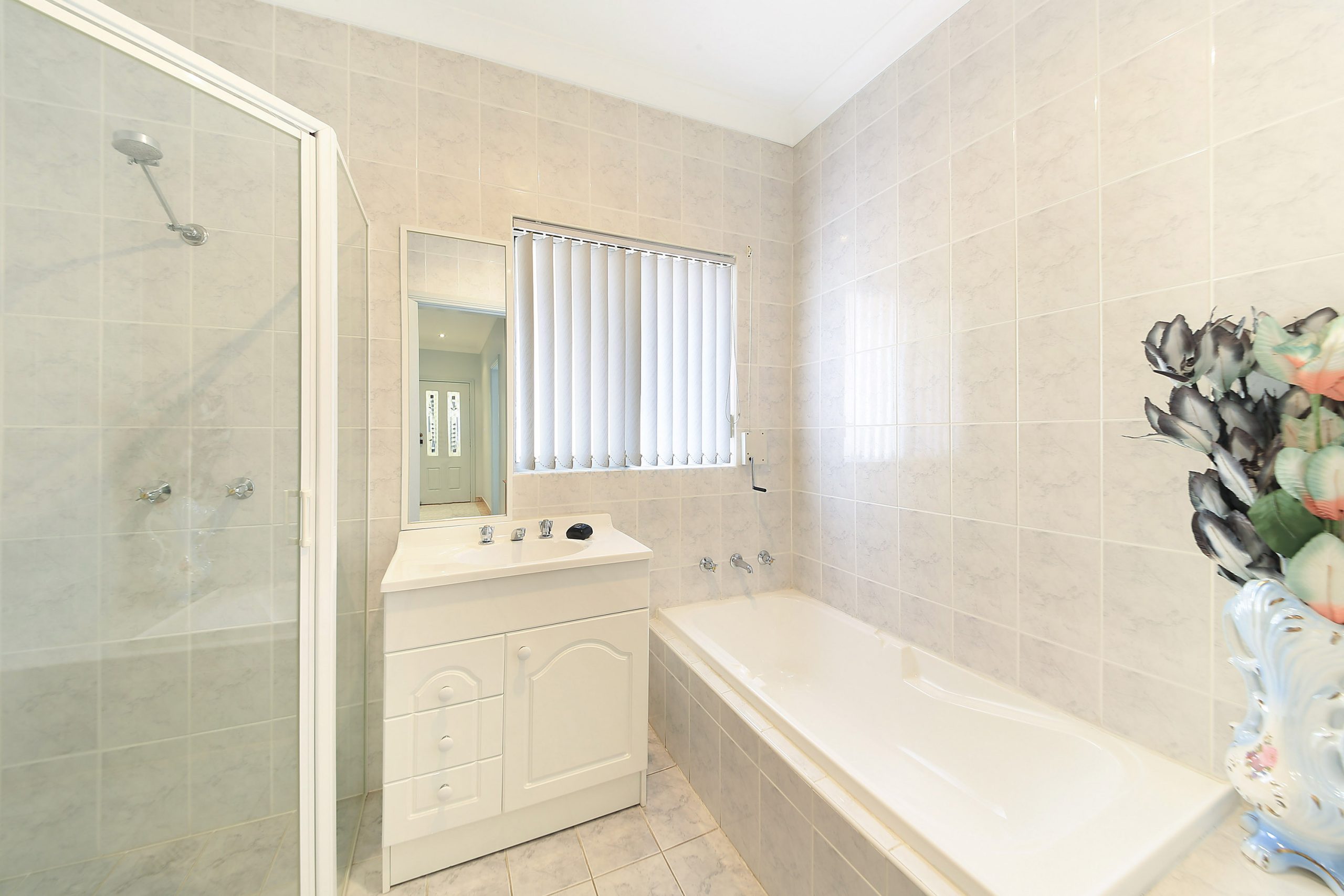 • Fully tiled bathroom with separate bath and shower