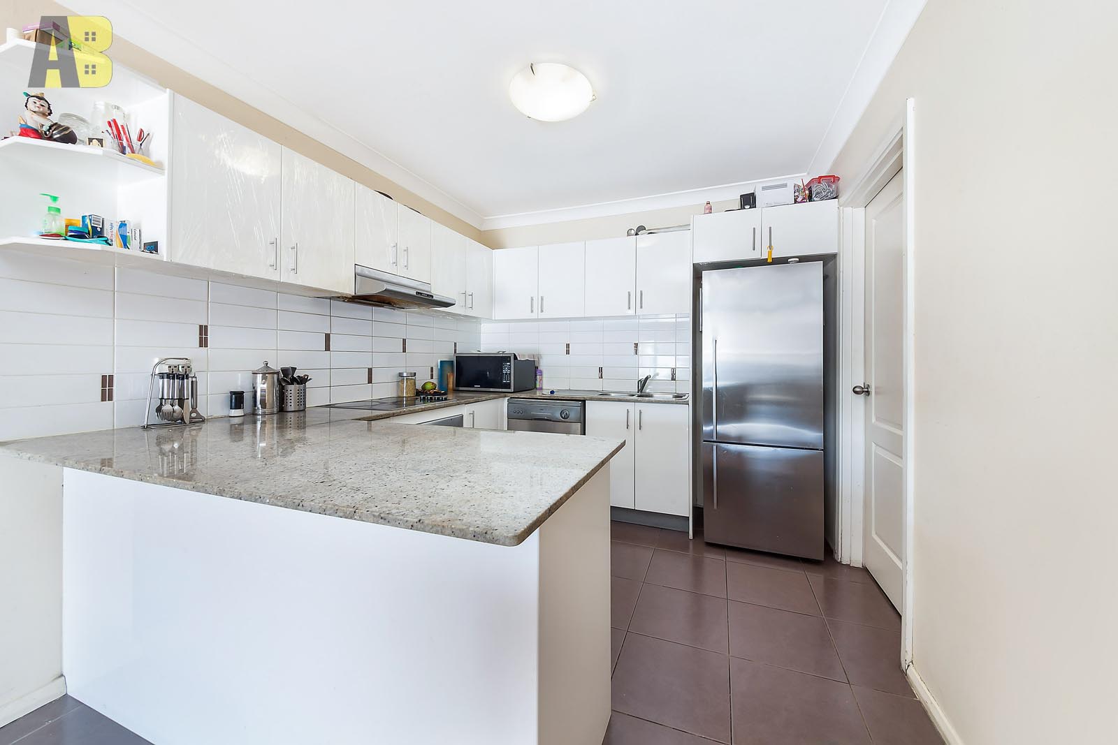 – Open plan modern kitchen with tiled floors, plenty of storage, induction cooktop plus dishwasher