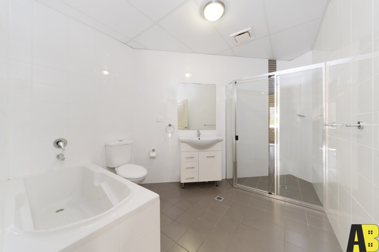+ Fully tiled bathroom features a separate bath-tub and shower