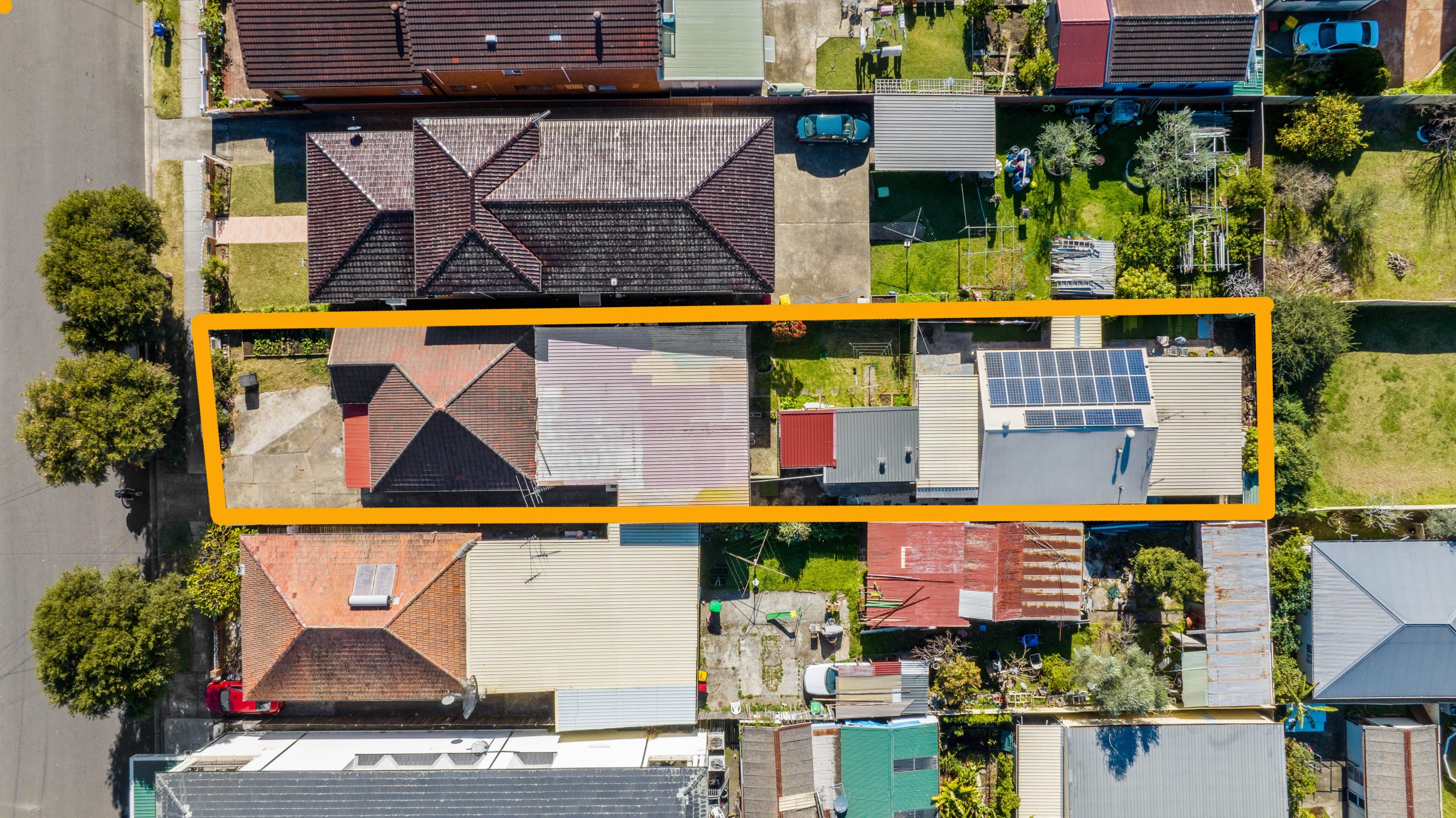 • Front House: A three-bedroom, two-bathroom home with large living areas and a fenced yard with a veggie patch. Currently leased for $710 per week.