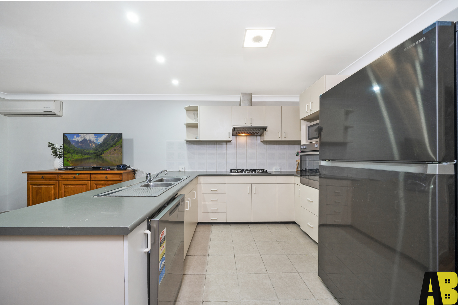 + Modern gas kitchen and stainless steel appliances and dishwasher