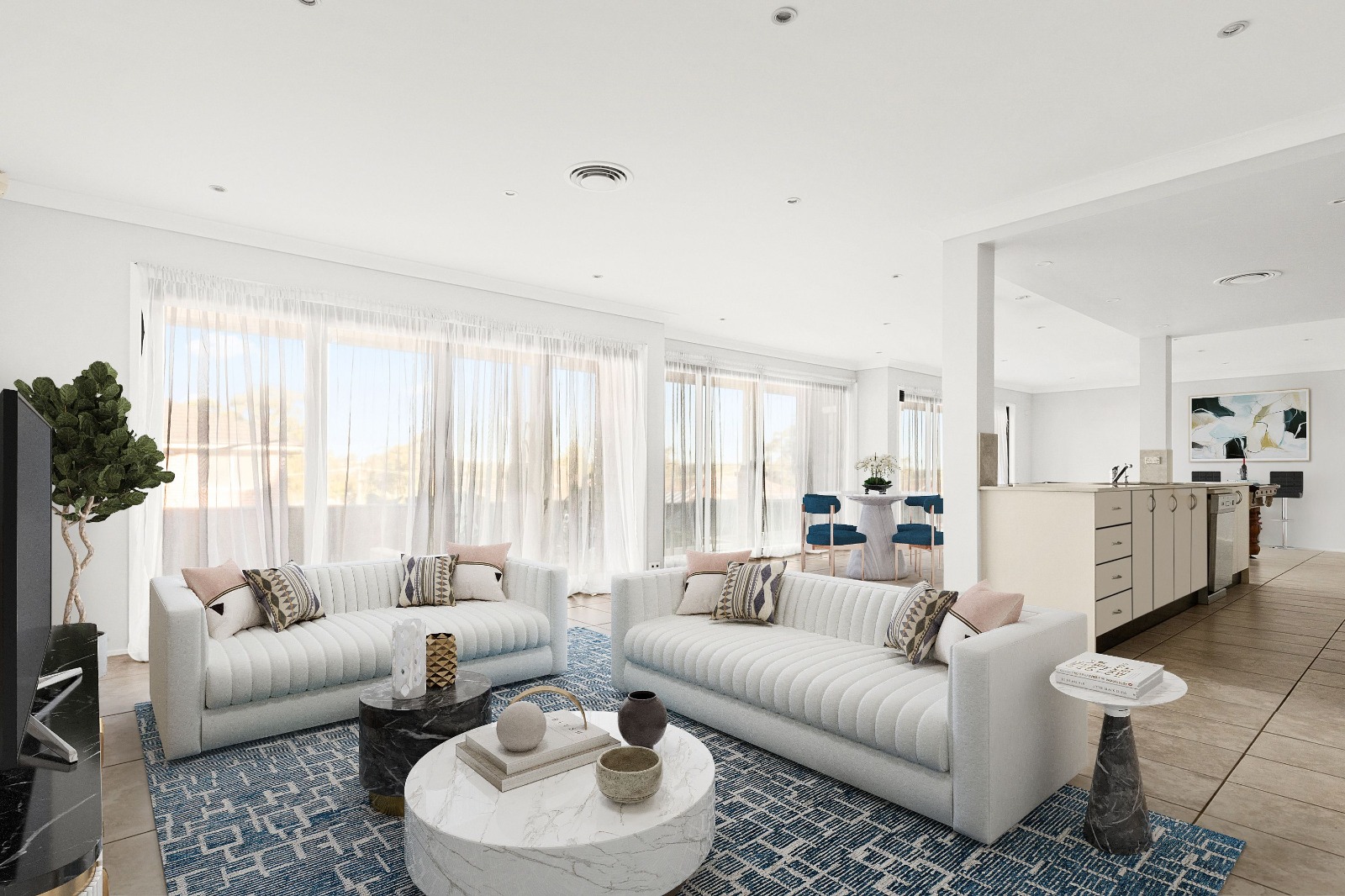 + Huge open plan dining/living area and entertainment room, the entire living area opening out to rear entertaining deck