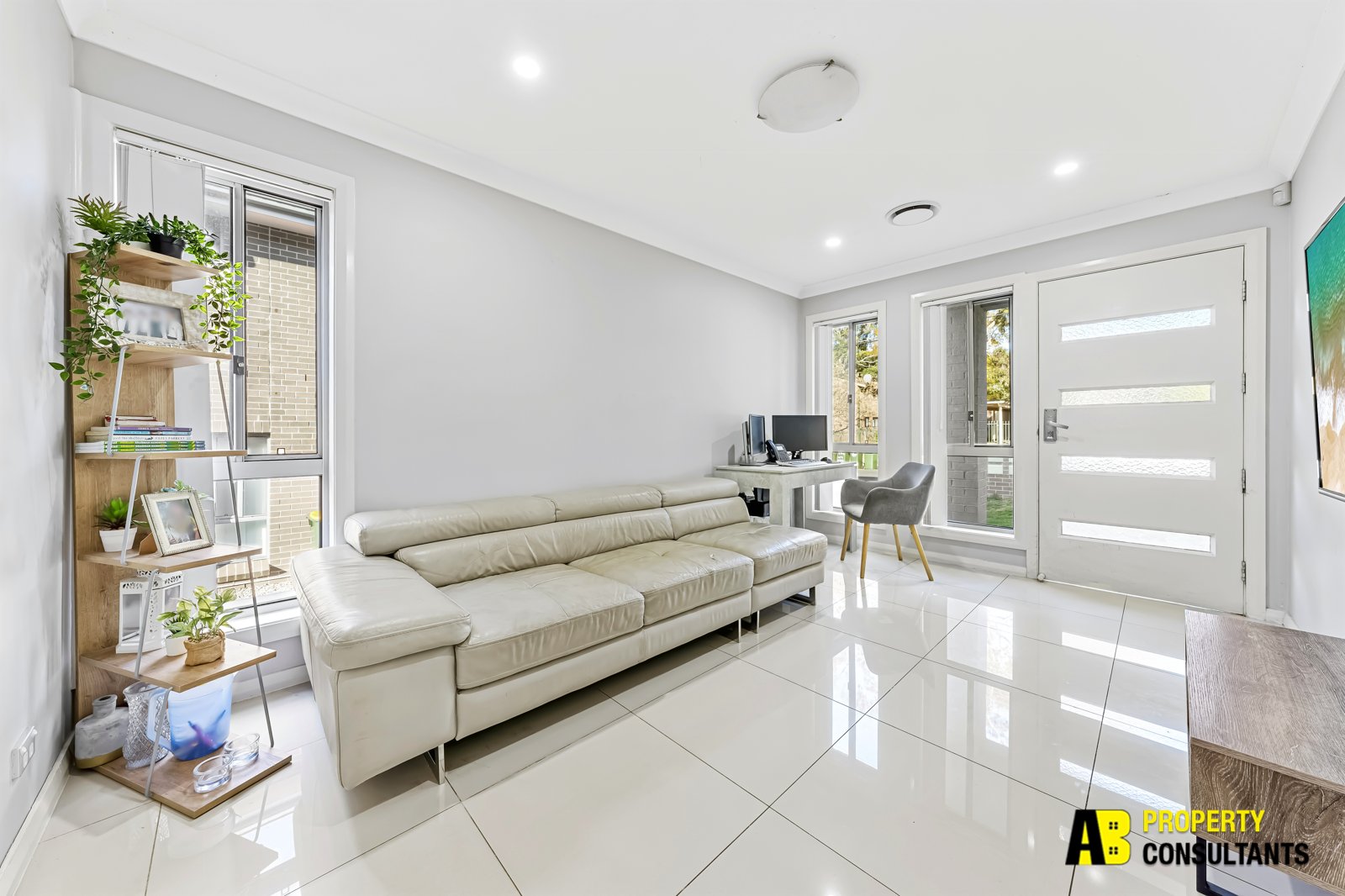 + A Living room is filled with natural light from three windows offering a comfortable space for relaxation.