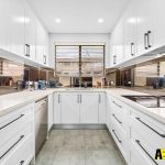 – Exquisite designer kitchen with stone benchtop, glass splashbacks, ample storage, and high-quality appliances