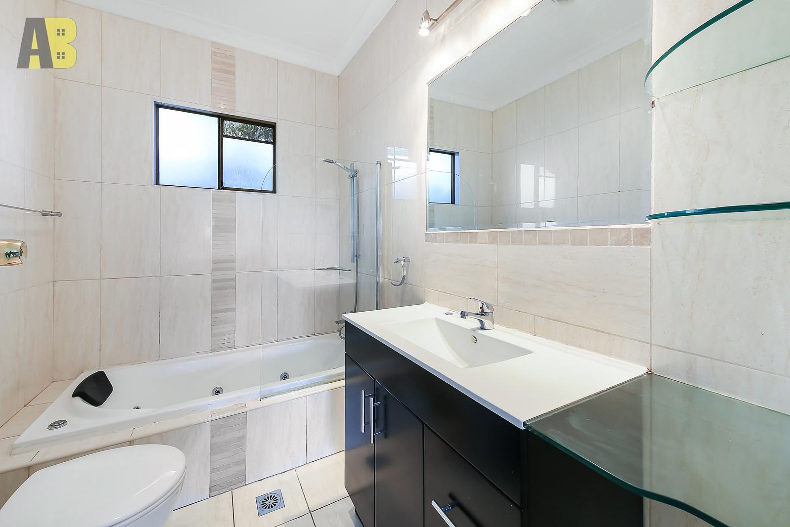 + Modern bathroom with floor to ceiling tiles