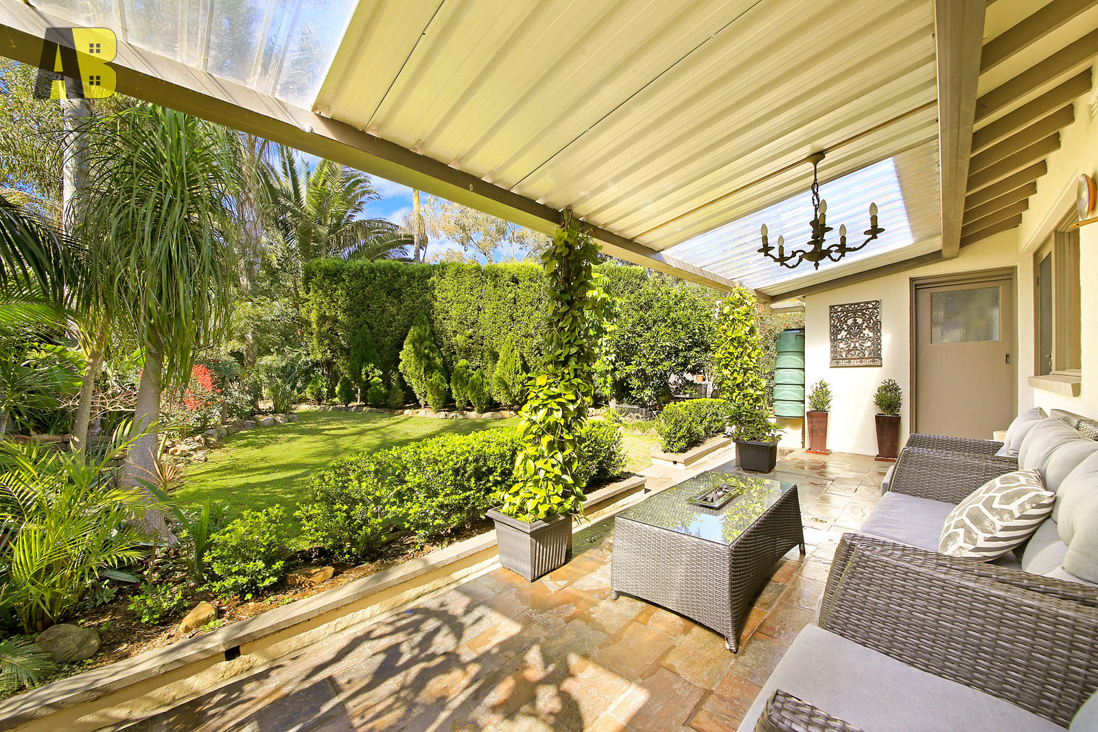 • Covered outdoor Entertainment area overlooking the well maintain garden