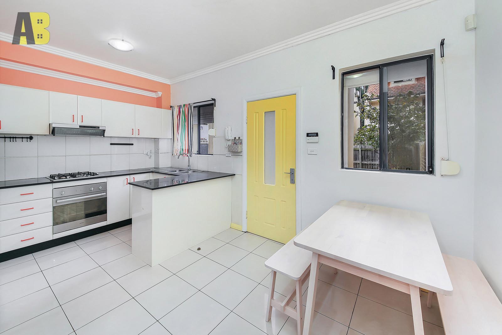 + Modern open plan kitchen with gas cooking, granite bench top and dining space