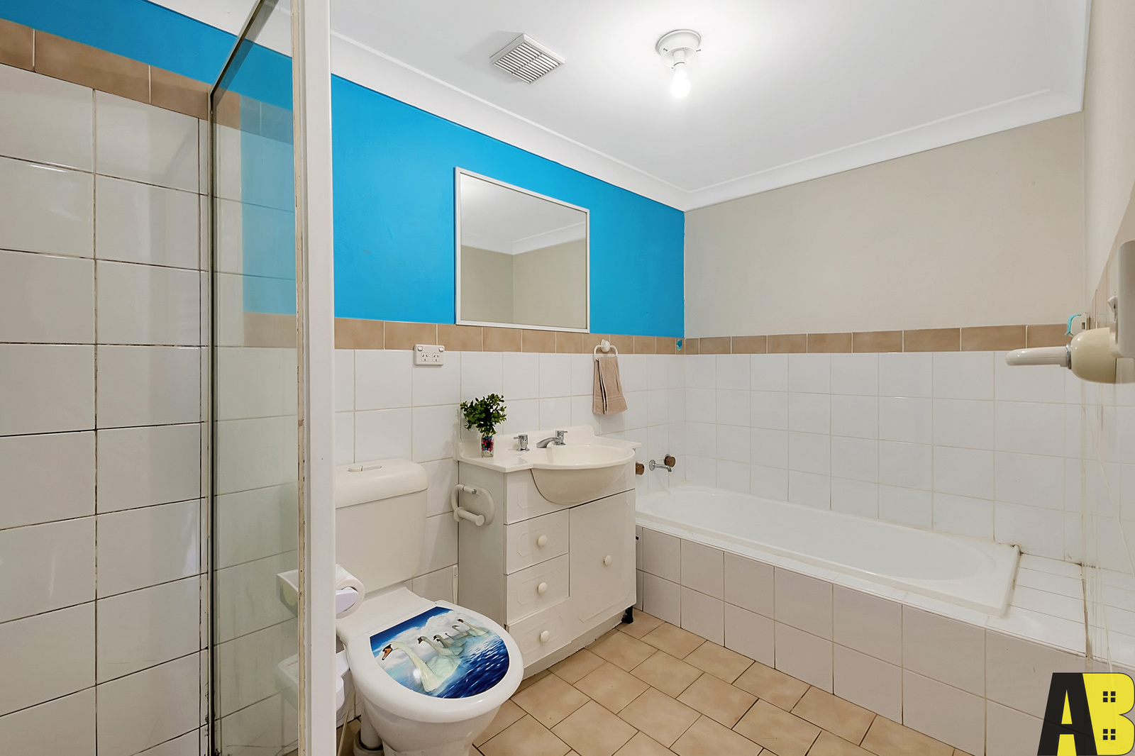 + Fully tiled bathroom with separate tub and shower