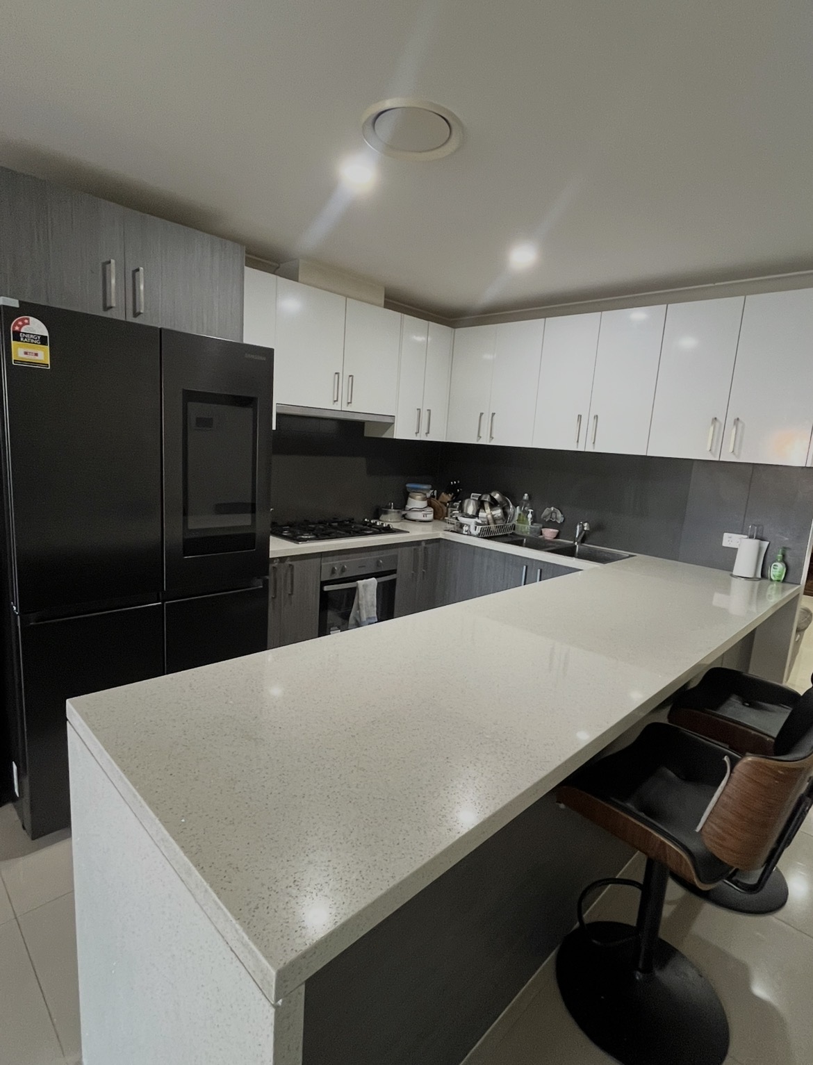 • Modern Gas cooktop kitchen with stone benchtops, stainless steel appliances with Dishwasher.