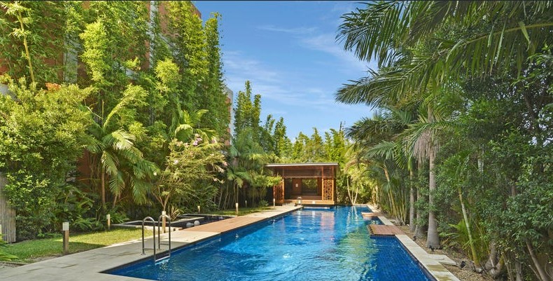 – Heated outdoor 25 metre pool, spa & sauna with Balinese-style day pavilion